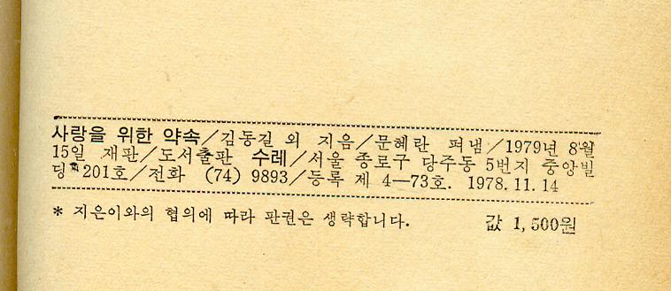 ±èµ¿±æ ¹Ú¿Ï¼­ µî Çѱ¹ À¯¸í¹®ÀÎ ¼öÇÊÁý -- »ç¶ûÀ» À§ÇÑ ¾à¼Ó(¿©ÀÚ¿Í ³²ÀÚ) (¼ö·¹ 1979³â ÀçÆÇ)