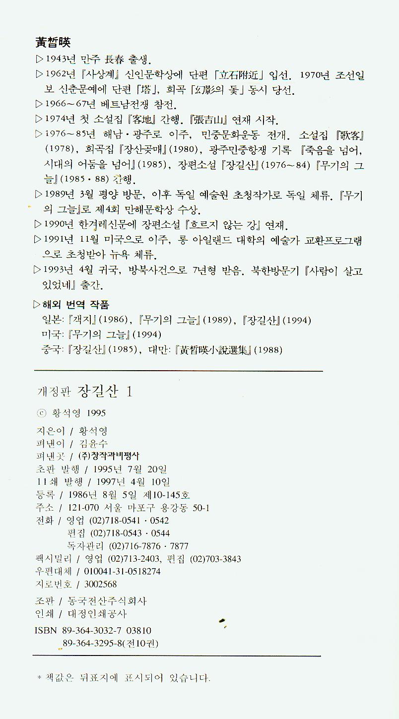 Ȳ¼®¿µ ¼±»ýÀÌ ¾´ "À屿»ê" Á¦1±Ç°ú Á¦2±Ç ¸ðµÎ 2±Ç »ÓÀÔ´Ï´Ù.
