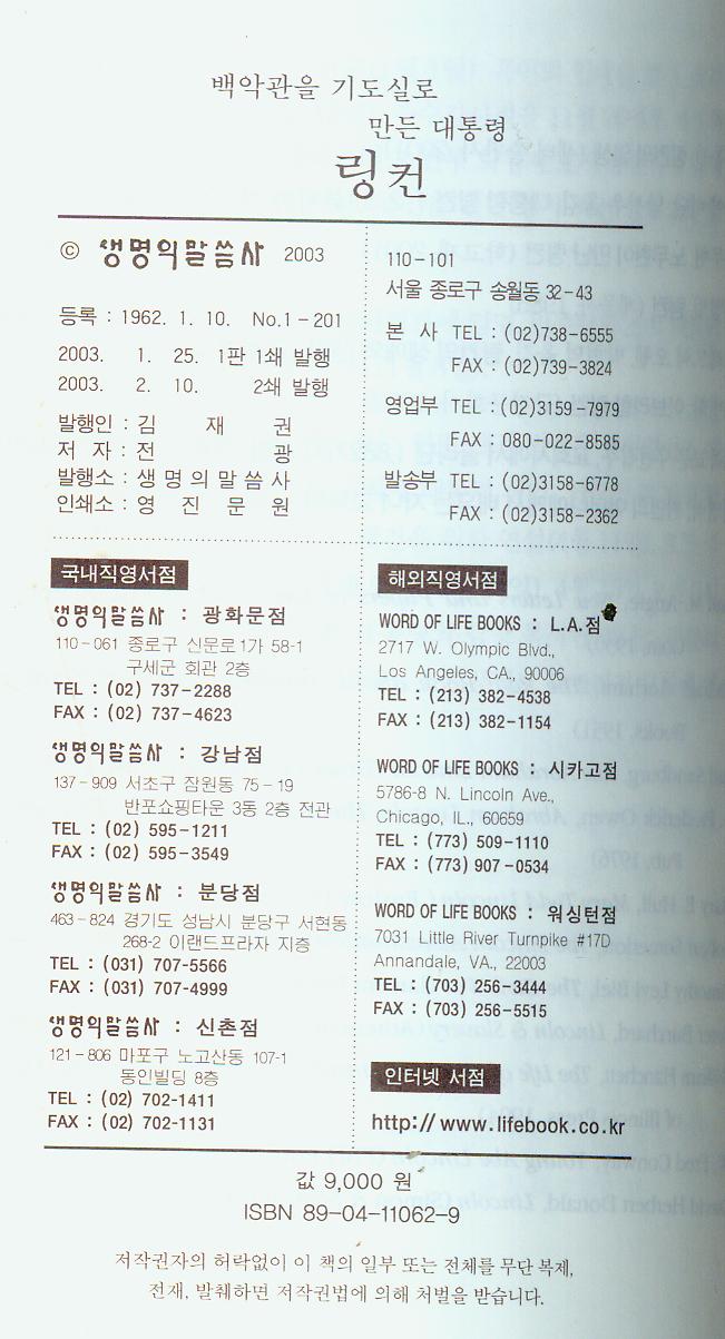 ¢Æ °æ¸Å¹°Ç° : (¸µÄÁ ´ëÅë·É Àü±â) ¹é¾Ç°üÀ» ±âµµ½Ç·Î ¸¸µç ´ëÅë·É ¸µÄÁ (2003³â) ¢Æ °æ¸Å¹øÈ£ : 30788 ¢Æ Ãâ°í¹øÈ£ : 34346 |