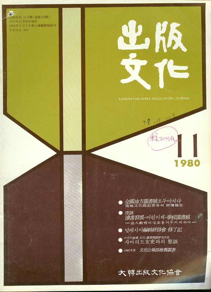 ´ëÇÑÃâÆÇ¹®È­Çùȸ 1980³â 11¿ù ¹ßÇà (Åë±Ç182È£) ( ºñ¸Åǰ : ) (