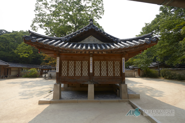 ³«¼±Àç ÈÄ¿ø Ȱè À§ÂÊÀÇ Àϰ¢¹®À» ³ª¼¸é µ¿ÂÊÀ¸·Î ÇÑÁ¤´çÀÌ ³ªÅ¸³´Ù. ÇÑÁ¤´çÀº ¡´µ¿±ÈµµÇü(ÔÔÏôÓñû¡)°¢ÁÖ1) ¡µ¿¡´Â ³ªÅ¸³ªÁö ¾Ê´Â °Ç¹°ÀÌ¾î¼ 1917³â ÀÌÈÄ °Ç¸³µÈ °ÍÀ¸·Î ÃßÁ¤Çϰí ÀÖ´Ù. ¸¶À½ÀÌ ÇѰ¡·Î¿î »óŰ¡ ÇÑ(ùÙ)À̰í, ¸öÀÌ Á¶¿ëÇÑ °ÍÀÌ Á¤(ð¡)ÀÌ´Ù. ¸ö°ú ¸¶À½ÀÌ °í¿äÇϰí Á¶±ÞÇÏÁö ¾ÊÀº ¹Ù°¡ 'ÇÑÁ¤'ÀÌ´Ù. ÁÖ·ÃÀº µ¿³²ÂÊ ¸ðÅüÀÌ ±âµÕ ³²ÂʸéÀÇ 'øÁäÌñÓØßìíÜÃãá'(Æò¾ÈÁ׸ÅÀϺ¸½Å: Æò¾ÈÇÑ ´ë³ª¹«´Â ¸ÅÀÏ ÁÁÀº ¼Ò½ÄÀ» ¾Ë·Á¿À°í)¿¡¼ ½ÃÀÛÇØ¼ ½Ã°è¹æÇâÀ¸·Î ÇÑ ¹ÙÄû µ¹¾Æ óÀ½ Ãâ¹ßÇÑ ±âµÕ µ¿ÂÊ ¸é¿¡¼ ³¡³´Ù. â´ö±ÃÀÌ °íÁî³ËÇÑ ¿îÄ¡¿Í »ó¼·Ó°í ¾Æ¸§´Ù¿î ºÐÀ§±â¿¡ ½Î¿© ÀÖ´Â ±Ã±ÈÀÓÀ» μÛÇϰí, ÀÓ±ÝÀÇ ÀºÅÃÀÌ ³Î¸® ÆÛÁö°í ¹®¿îÀÌ À¶¼ºÇÑ ÅÂÆò¼º´ë¸¦ ³ë·¡Çϰí ÀÖ´Ù.