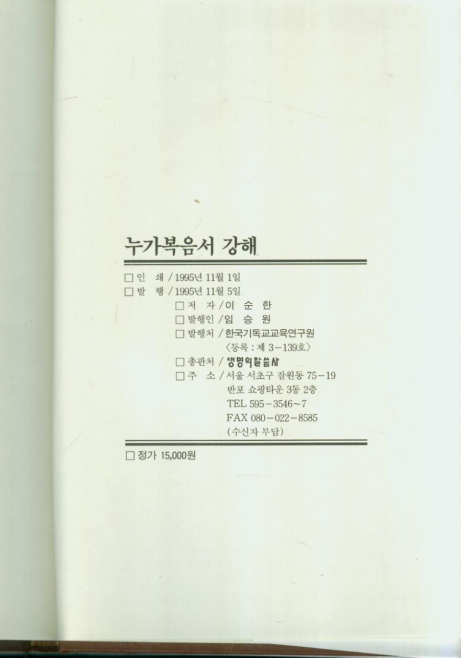 ¢Æ °æ¸Å¹°Ç° : ( ¼º°æÁÖ¼® ) À̼øÇÑ ¸ñ»ç îÊ -- ´©°¡º¹À½ °­ÇØ (Çѱ¹±âµ¶±³±³À°¿¬±¸¿ø 1995³â ÃÊÆÇ)