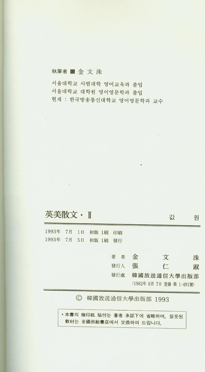 Çѱ¹¹æ¼ÛÅë½Å´ëÇÐ ¿µ¾î ±³Àç --- ¿µ¹Ì»ê¹® (2) (1993³â)